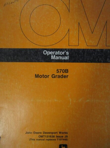 OMT131638 John Deere 570B Motor Grader Operators Manual