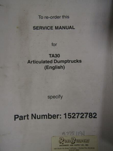 Terex TA30 Articulated Dump Truck Service Manual