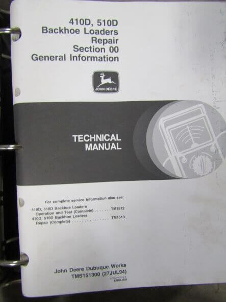 TMS151300 John Deere 410D 510D Backhoe Loaders Repair Section 00 General Information Technical Manual